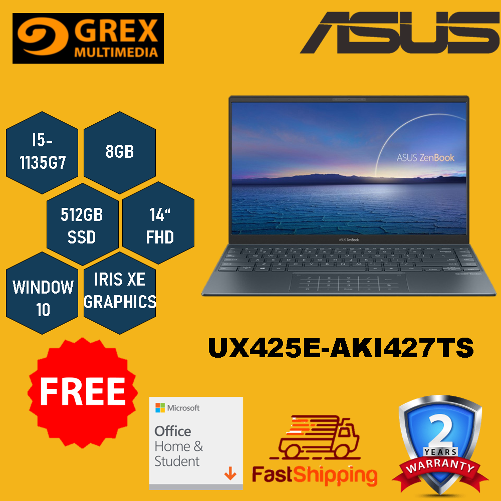 Asus Zenbook 14 Ux425e Aki427ts Laptop I5 1135g7 8gb 512gb Ssd 14 Fhd Xe Graphics Win10 Sleeve Pre Installed Office H S 2019